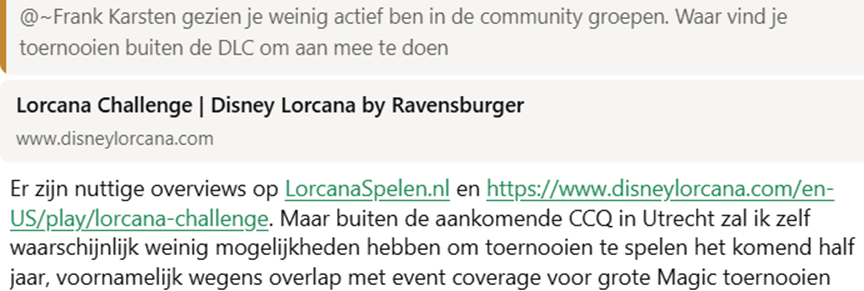 “Nee, Magic blijft mijn huidige hoofdwerk en eerste TCG-liefde; ik schrijf wekelijks voor verschillende websites en ben betrokken bij de event coverage van de grootste toernooien. Lorcana is zeer leuk, maar doe ik er eerder bij als extra hobby. Ik heb tegenwoordig zelden tijd om überhaupt veel Magic- of Lorcana-potjes te spelen.”