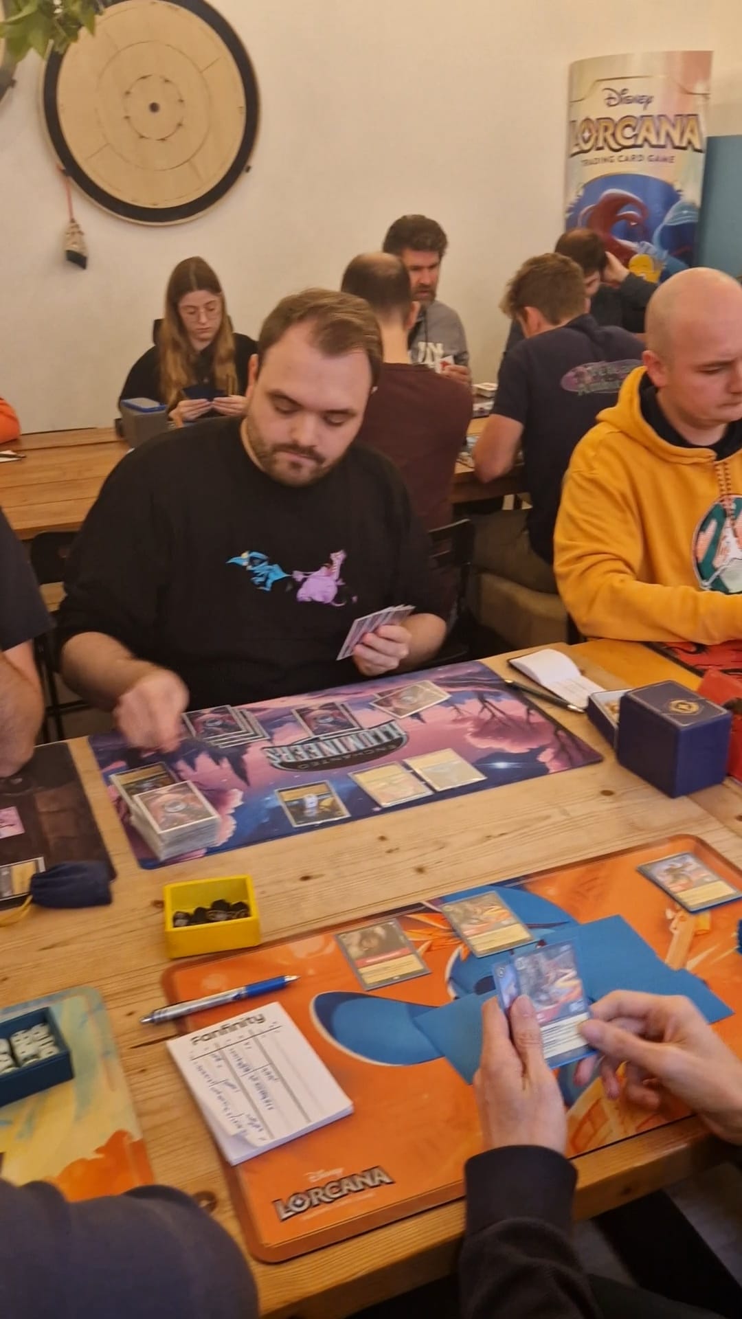 Drie van de vier matches zijn klaar en er is nog één tafel over: Deniz tegen Frank Karsten. Frank is binnen Lorcana het meest bekend van zijn winst tijdens de DLC in Lille. Deniz heeft de afgelopen Go Ink Yourself de top 8 gehaald (top 8 heeft gesplit).