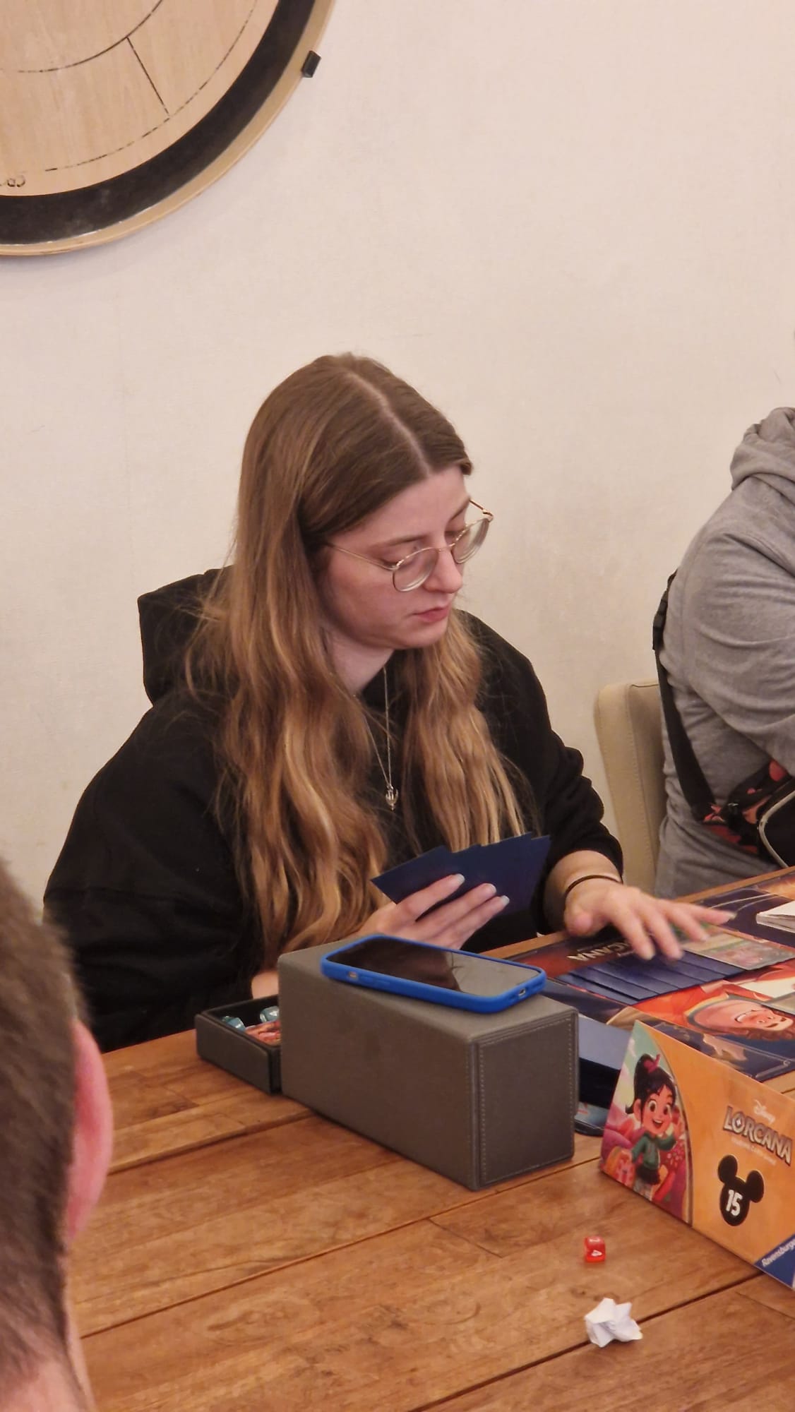 Ik loop langs de spelers, houd een beetje in de gaten hoe de matchups gaan en laat vooral zien dat ik aanwezig ben. Op de vraag hoeveel tijd er nog in de ronde is na, krijg ik verder geen vragen. Tegen de tijd dat de ronde voorbij is, vul ik een aantal scores in voor mensen die geen verbinding met de Ravensburger Play Hub kunnen krijgen. Ik kondig aan dat de tijd om is en dat er nog vijf beurten gespeeld mogen worden.