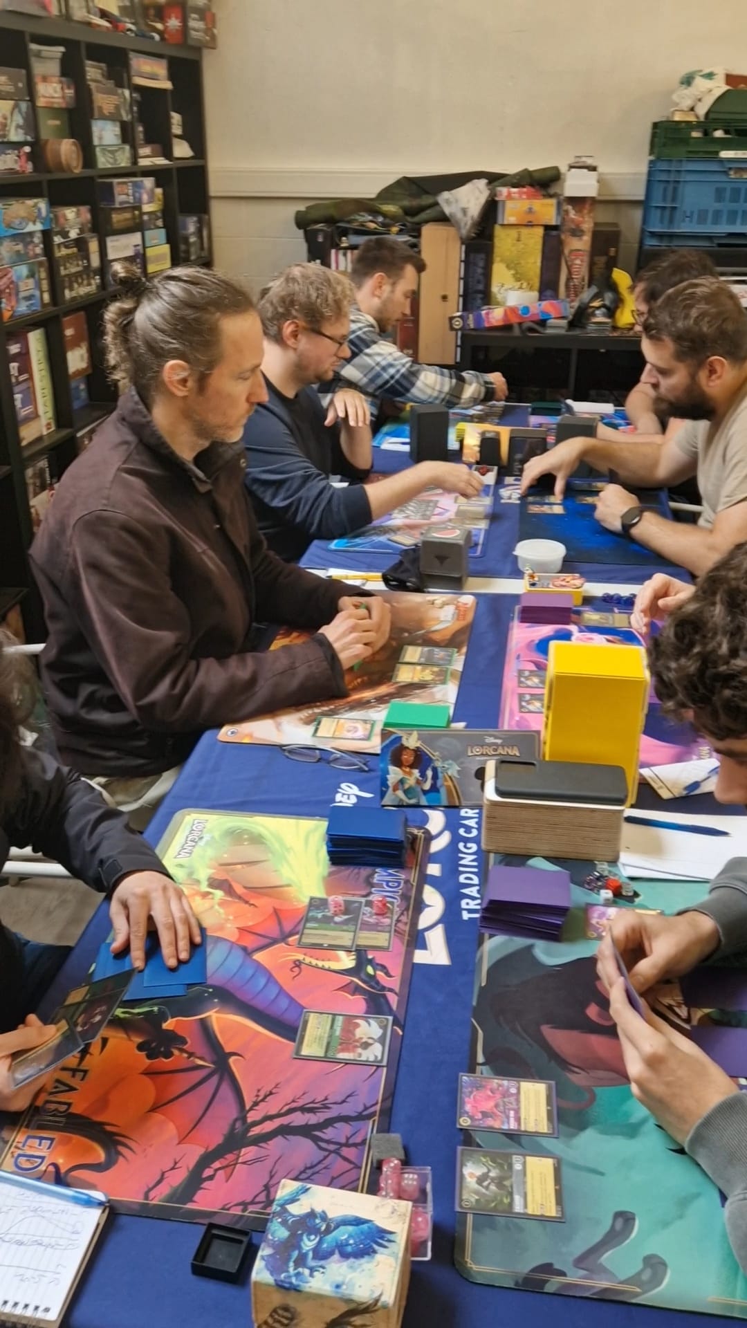 Top 8 en toeschouwers blijven over, het is een stuk rustiger in de winkel. Toch kan je de spanning voelen. Er staat heel wat op het spel voor deze acht spelers. Voor plek 5 tot en met 8 is er een Fabled Trove plus Elsa Giftset Box. De nummers 3 en 4 krijgen ieder drie boosterboxen en een convention playmat. Voor de nummer 2 is er een Enchanted Elsa en een convention playmat, en de nummer 1 krijgt beide Iconics en een convention playmat.