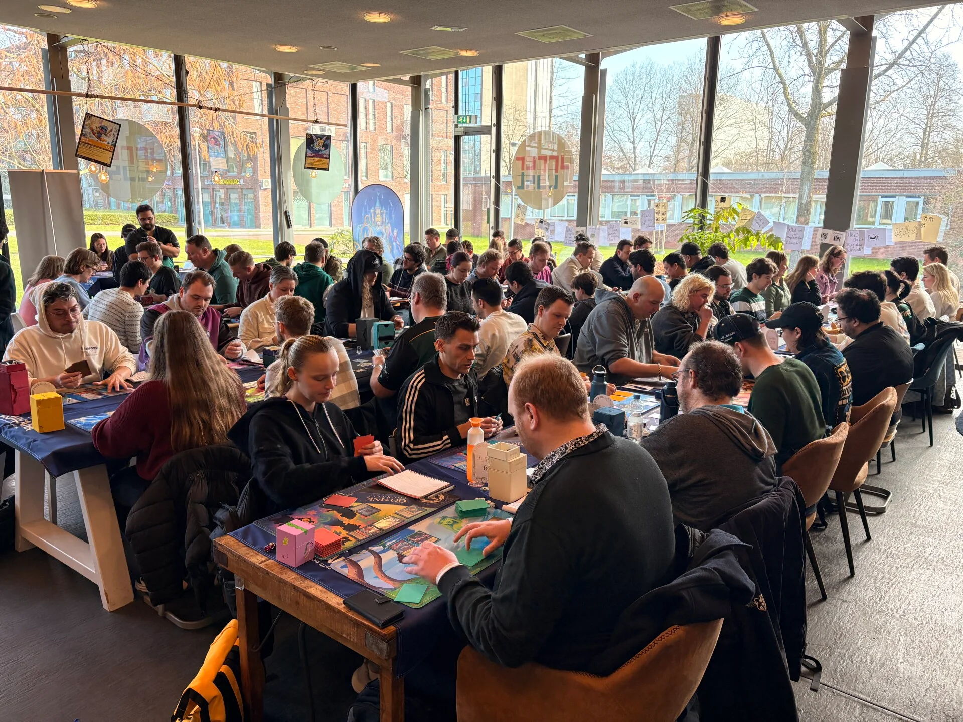 Bij entree staat Jayme al de registratielijst te controleren. Hij ontvangt iedereen hartelijk. Van tevoren was veel al geregeld. Tickets zijn online betaald, decklijsten (als het goed is) al ingeleverd en er wordt verzocht lunchverzoeken alvast op een flyer in te vullen zodat de keuken rekening ermee kan houden en iedereen tijdens de lunchpauze op tijd geholpen kan worden. Hulde voor deze voorbereiding en organisatie. Iedereen krijgt ook een zakje met daarin 2 boosters en wat promo’s (met een paar bofkonten die Store Championship-promo’s in hun zakje hebben! Een leuke verrassing voor de gelukkigen).
